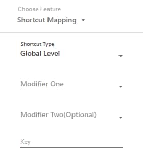 - In the Shortcut Type list, select the level of shortcut key mapping you want to configure. By default, Global Level is set. Do one of the following: