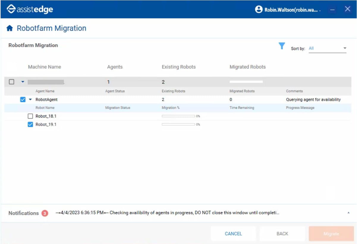- Additionally, you can select the desired number of robots that you need to migrate. Here, Robot_19.1 is selected.