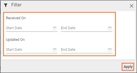 (Filter) icon. The Filter window appears. - Enter the Start Date and End Date of the required filter type.
