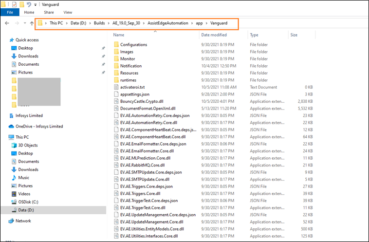 - Create empty activateroi.txt file at location $AssistEdgeAutomation\app\Vanguard folder.