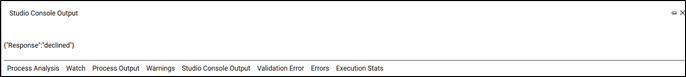 From the Output dropdown list, select the argument to map the status of the operation performed. You must pre-define the parameter as an Out argument to make it available for selection. You can use the JSON activity to utilize the retrieved data as per your need.