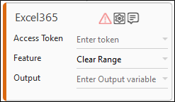 - The validation error symbol disappears when you select relevant values in the particular field from the available list. For example, Access Token, Clear Range, and Output.