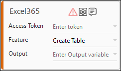 - The validation error symbol disappears when you select relevant values in the particular field from the available list. For example, Access Token, Create Table, and Output.