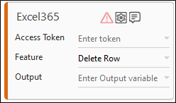 - The validation error symbol disappears when you select relevant values in the particular field from the available list. For example, Access Token, Delete Row, and Output.