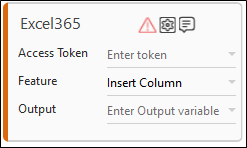 - The validation error symbol disappears when you select relevant values in the particular field from the available list. For example, Access Token, Insert Column, and Output.