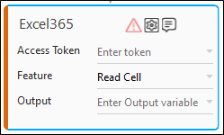 - The validation error symbol disappears when you select relevant values in the particular field from the available list. For example, Access Token, Read Cell, and Output.