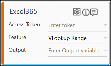 - In the Access Token list, select the output parameter holding the value of access token from the OAuth activity to pass in the Excel 365 activity. For more information, see OAuth activity.the Feature list, select Read Table Row.