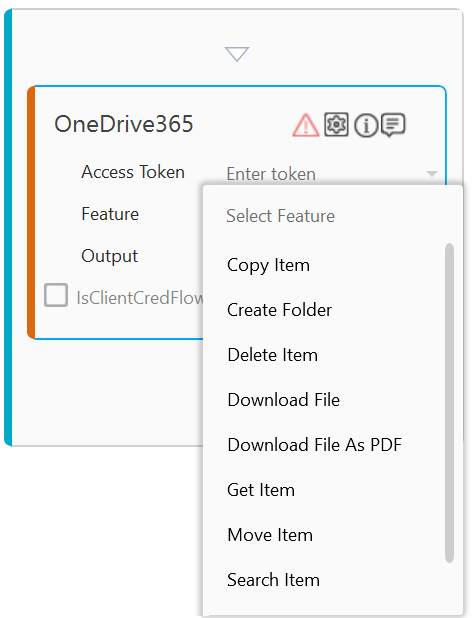 The OneDrive365 activity enables you to automatically perform the operations related to Microsoft OneDrive365 services such as copy item, create folder, delete item and so on.
