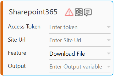 - Drag the Sharepoint 365 activity and drop the activity below the OAuth activity inside the Application activity block. The validation error symbol disappears when you select at least one features from the available list.
