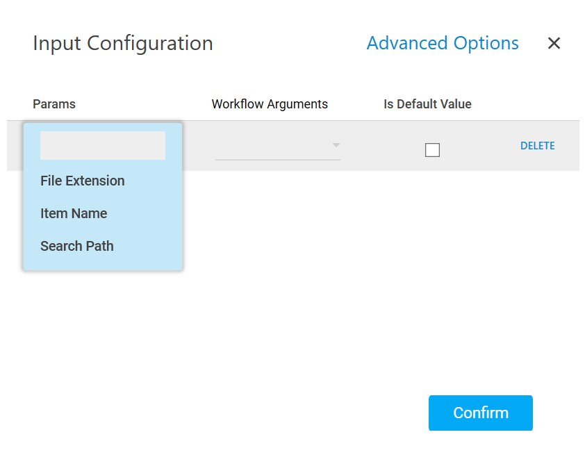 - Click Advanced Options. These are optional parameters that lets you define more input configuration as per your requirements.