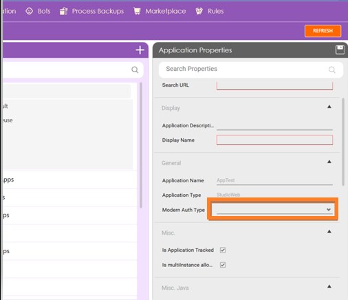 - Once the entry is made, it is shown in the Modern Auth Type combobox in the Application Properties. For more information about Application Properties, see AE-RPA-Engage-Automation Studio User Manual.