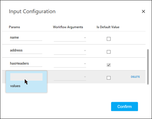 - You can select the Is Default Value checkbox to set the selected input parameter as the default value.