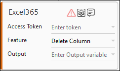 - The validation error symbol disappears when you select relevant values in the particular field from the available list. For example, Access Token, Delete Column, and Output.