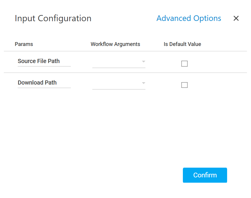 - Advanced Options: This is an optional parameter such as a renaming the uploaded file.