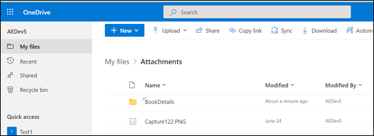 The BookDetails folder gets created inside the Attachments folder and immediately moves to the Output folder after getting renamed to NewBookDetails: