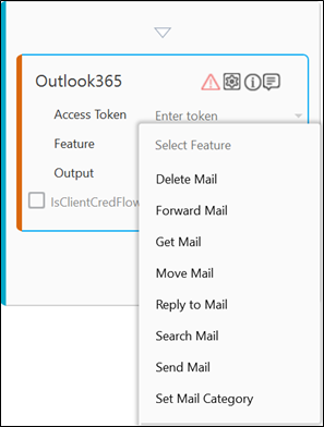 The Outlook365 activity enables you to automatically perform the operations related to Microsoft Outlook365 services such as search, forward, move, send Emails and so on.