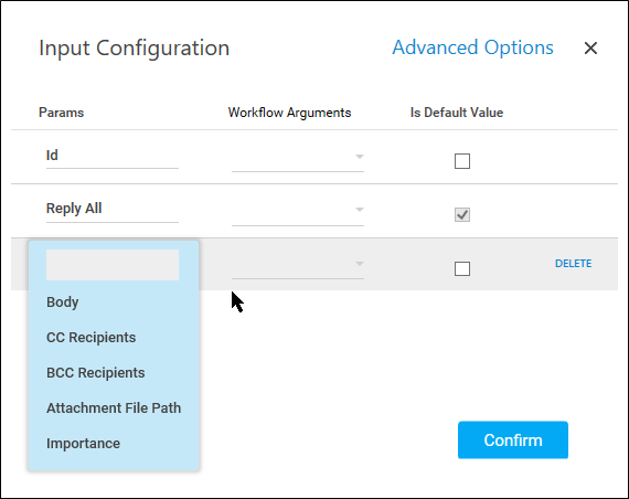 - Click Advanced Options to enter more input configuration as per your requirements.