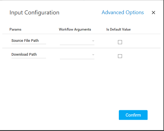 - Click Advanced Options. These are optional parameters that lets you define more input configuration as per your requirement.