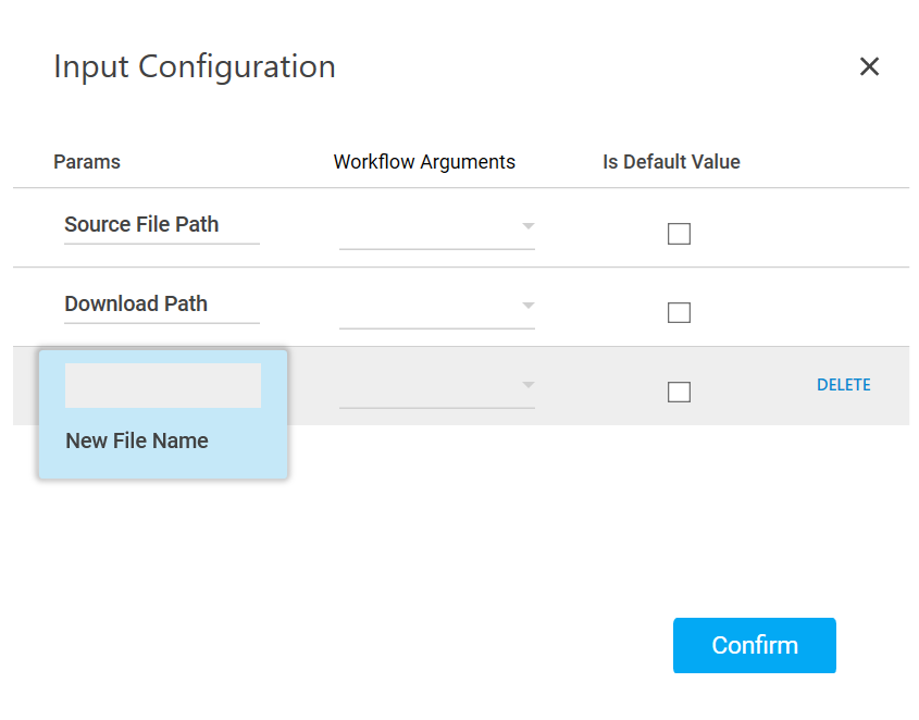 - You can select the Is Default Value checkbox to set the selected input parameter as the default value.