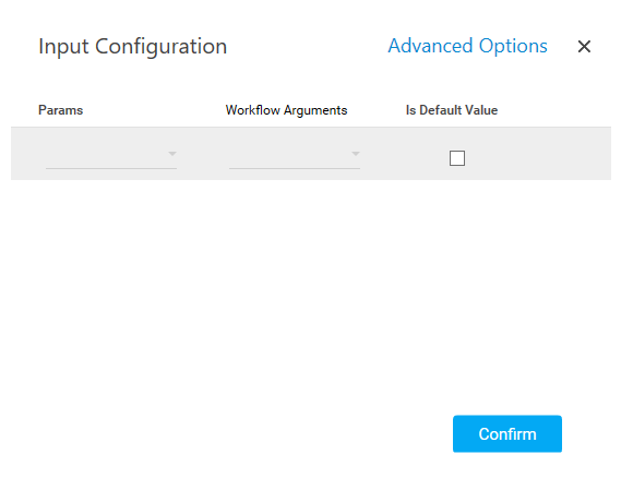 - Click Advanced Options. These are optional parameters that lets you define more input configuration as per your requirements.