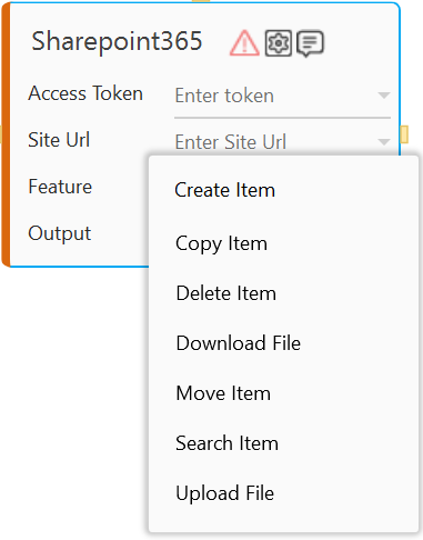 The Sharepoint 365 activity enables you to perform following actions: