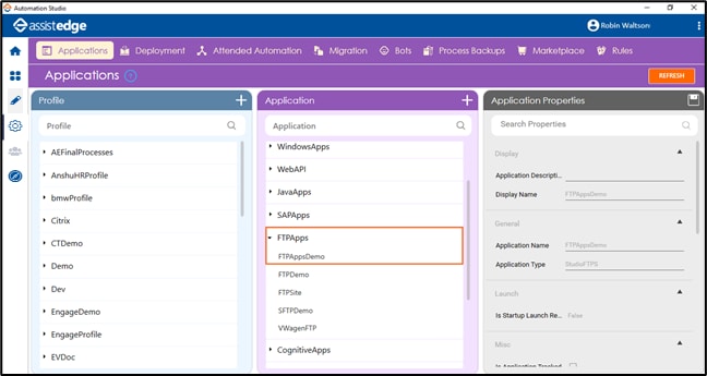 Before you start creating the process, configure the FTP or SFTP server in Automation Studio where you want to perform the automation. Below are the minimum required properties for configuring the intended server. Remaining fields are auto populated with the default values already configured in Automation Studio . If you want to change the default values, refer FTPApps in the Admin Capabilities section.