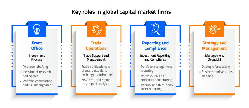 The above diagram showcases the importance of data at every functional point within a Capital Market services organization.